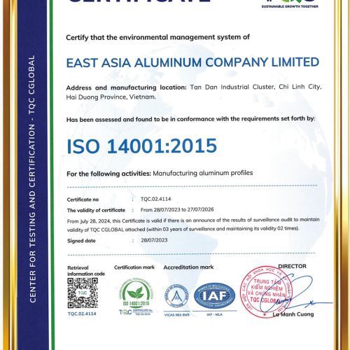 East Asia Aluminum Co., Ltd is located in Le Dai Hanh Ward, Hai Phong City, is one of the largest aluminium manufacturers in Vietnam.